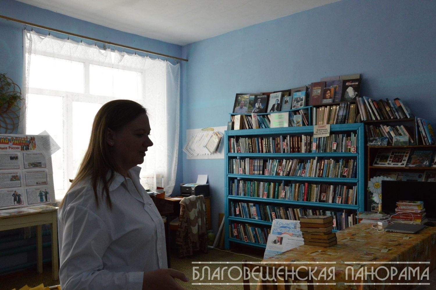Проходим чуть дальше по коридору, заходим в комнату. Внутри библиотека совсем не похожа на пыльное книгохранилище. Светлые стены, на стеллажах – не только книги, но и детские поделки, рисунки, поделки из природных материалов. Здесь пахнет бумагой, красками и… добротой.
