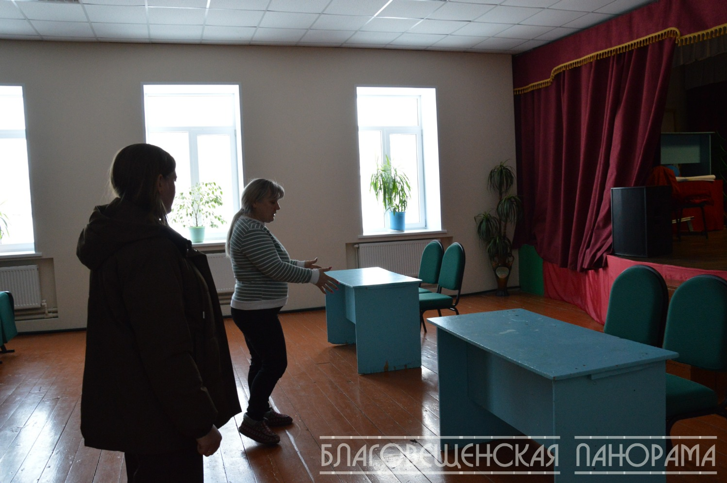 Мы входим в здание, и я сразу вспоминаю рассказ Людмилы Федоровны о том, как было «до», без водоснабжения и канализации. Сейчас здесь светло, свежевыкрашенные стены, на сцене – новые занавески.