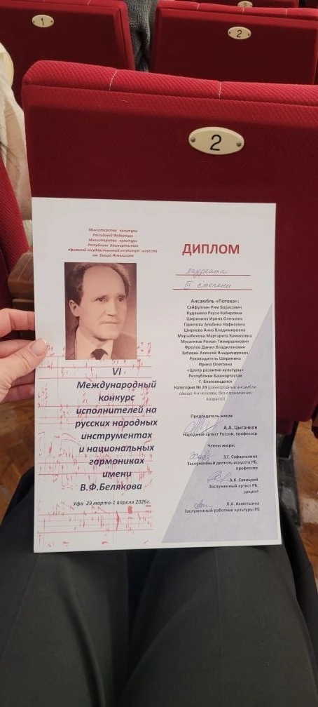 Коллектив под руководством Ирины Ширининой и при участии концертмейстера Рима Сайфуллина завоевал звание лауреата третьей степени. Награда — заслуженное подтверждение таланта музыкантов и их преданности искусству.
