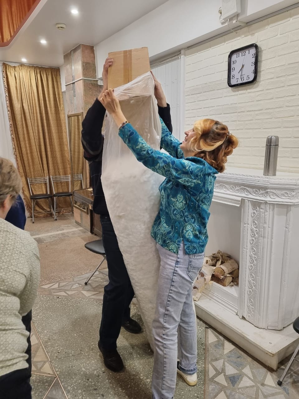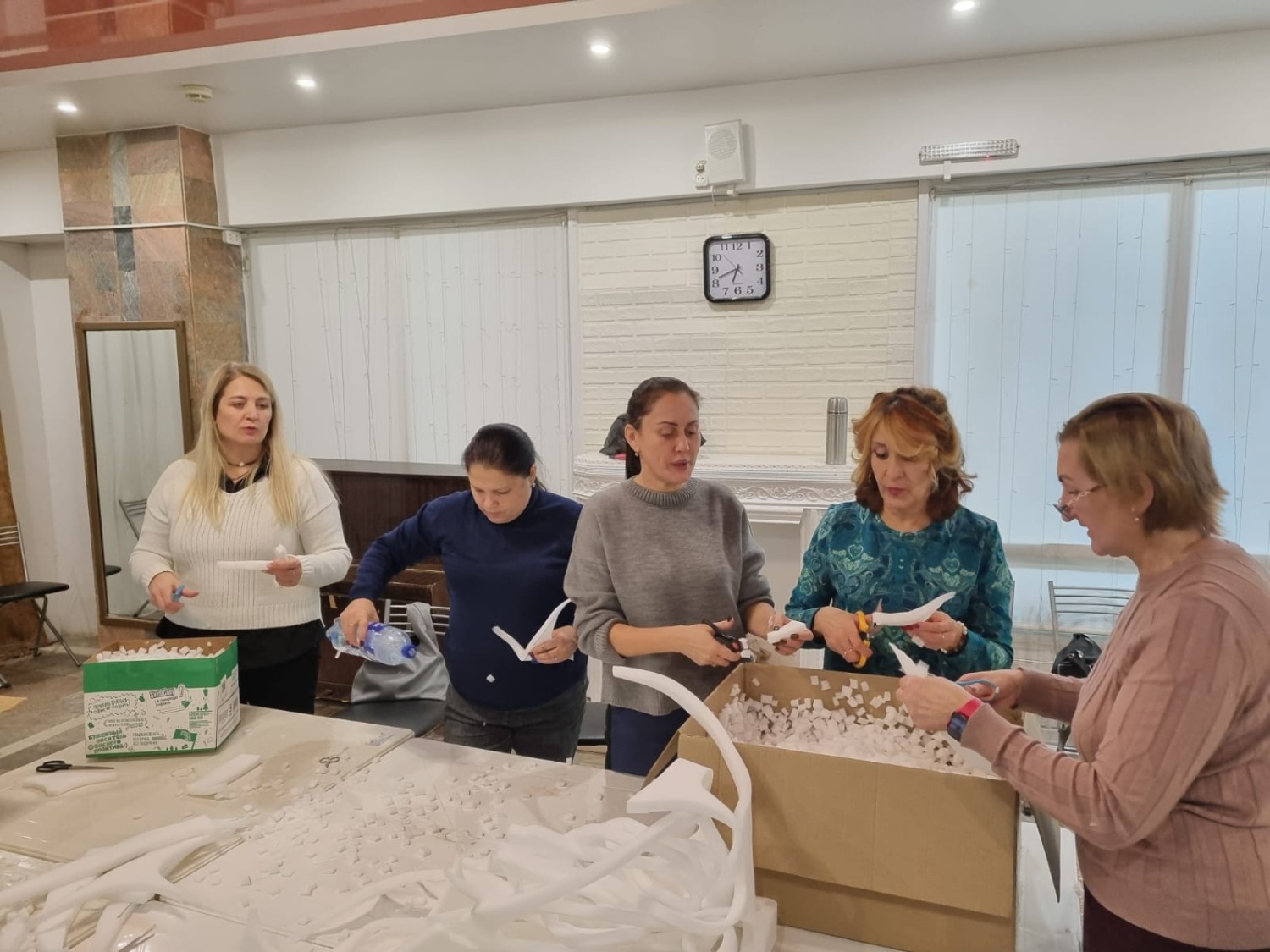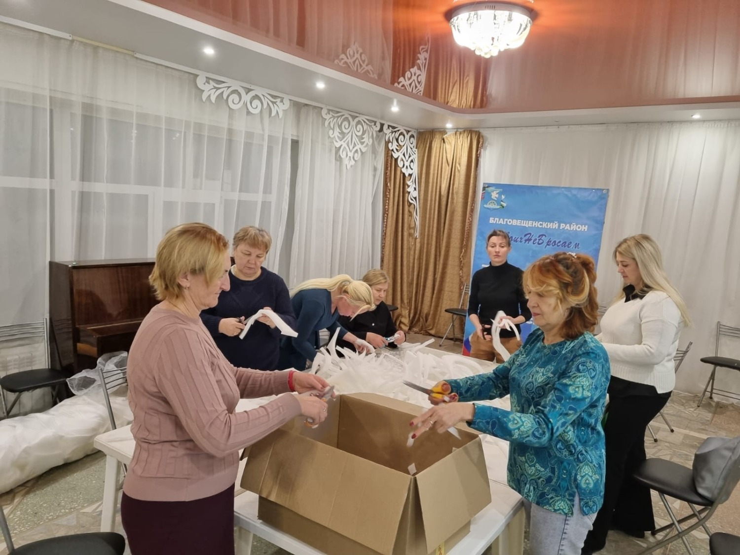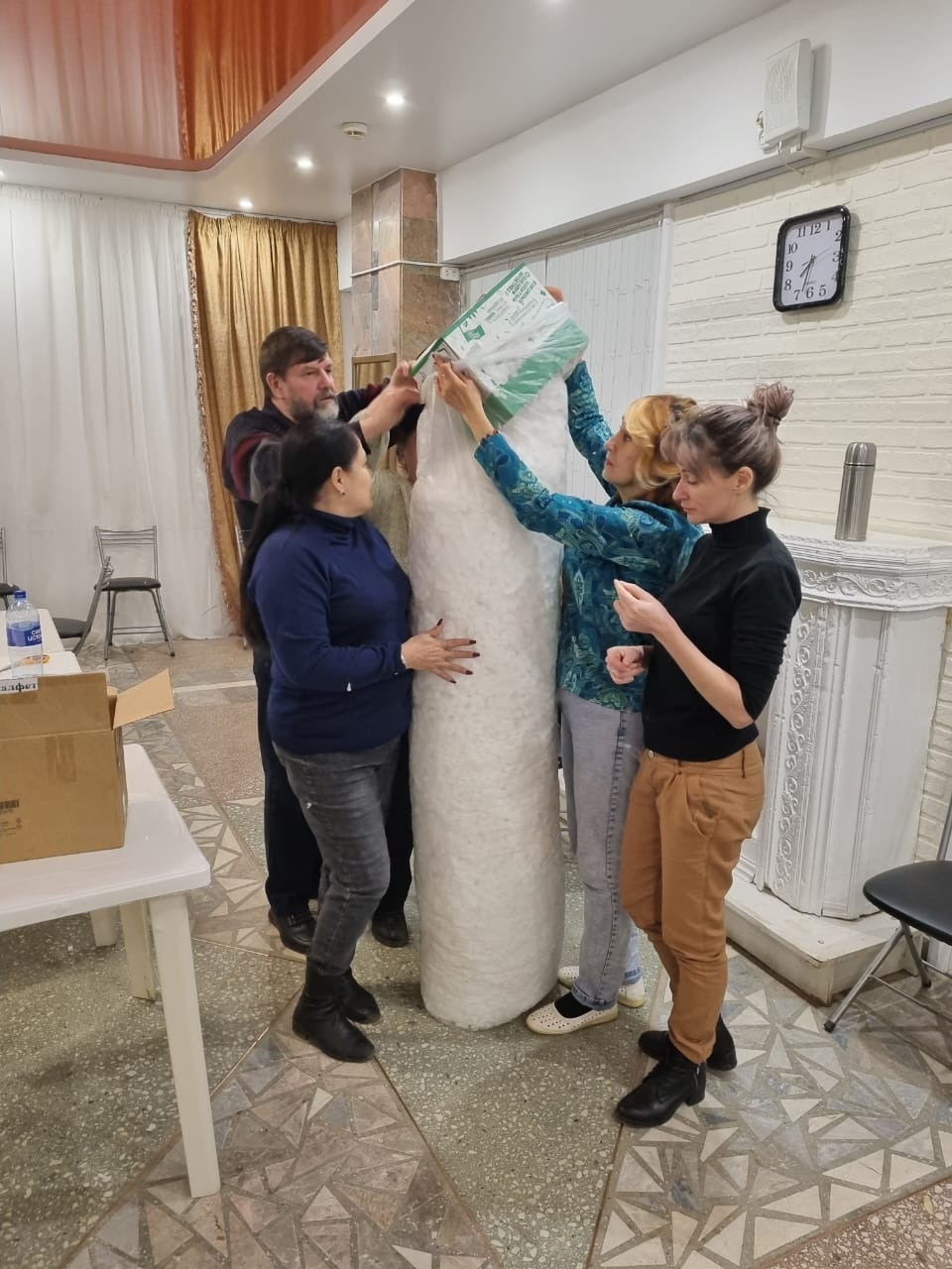 Вечернюю смену уверенно взяли участники студии «Хочу петь». Они внесли в процесс свою особенную энергетику: работа по нарезке поролона шла под аккомпанемент разученных песен. Получился самый душевный конвейер, где приятное гармонично сочеталось с полезным.