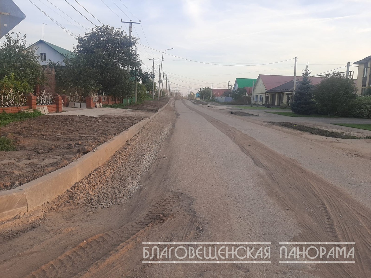 Продолжаются ремонтные работы на дороге по улице Демьяна Бедного в Благовещенске.