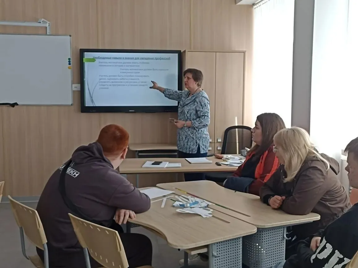 До Единого дня открытых дверей студентки колледжа провели для школьников классный час на тему «Профессионалитет: ты в хорошей компании!». В неформальной обстановке девушки рассказали о преимуществах практико-ориентированного обучения, о том, как можно быстро получить востребованную профессию и начать строить карьеру на ведущих предприятиях региона.