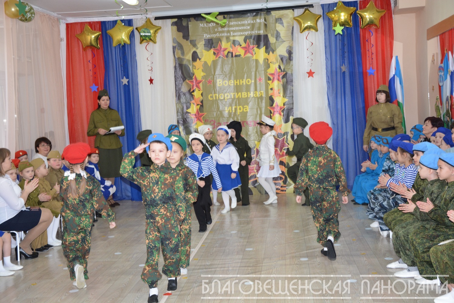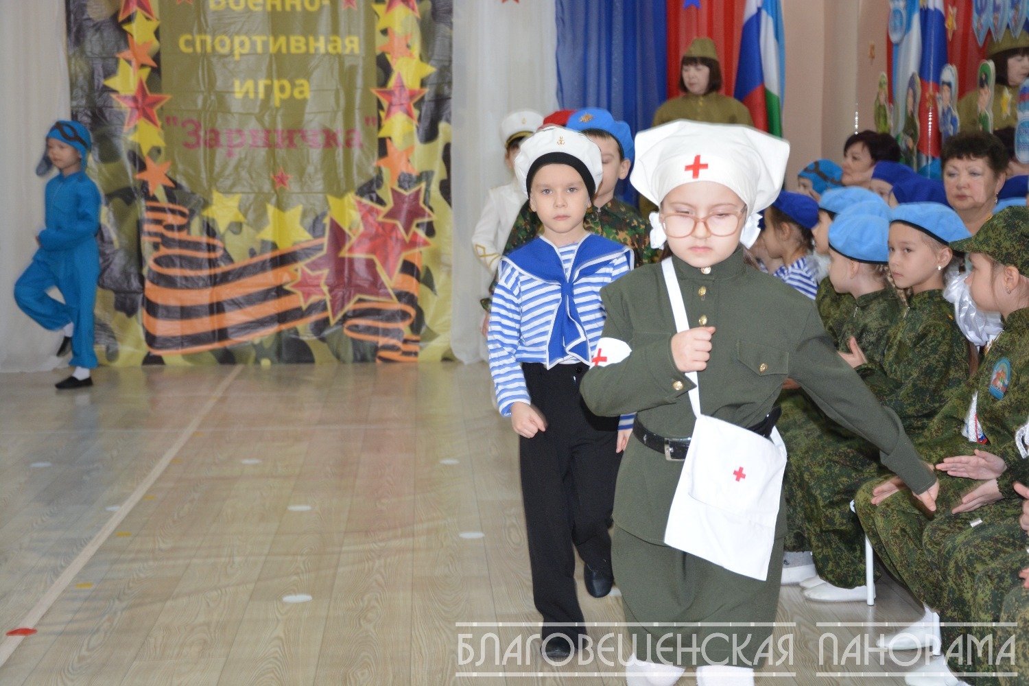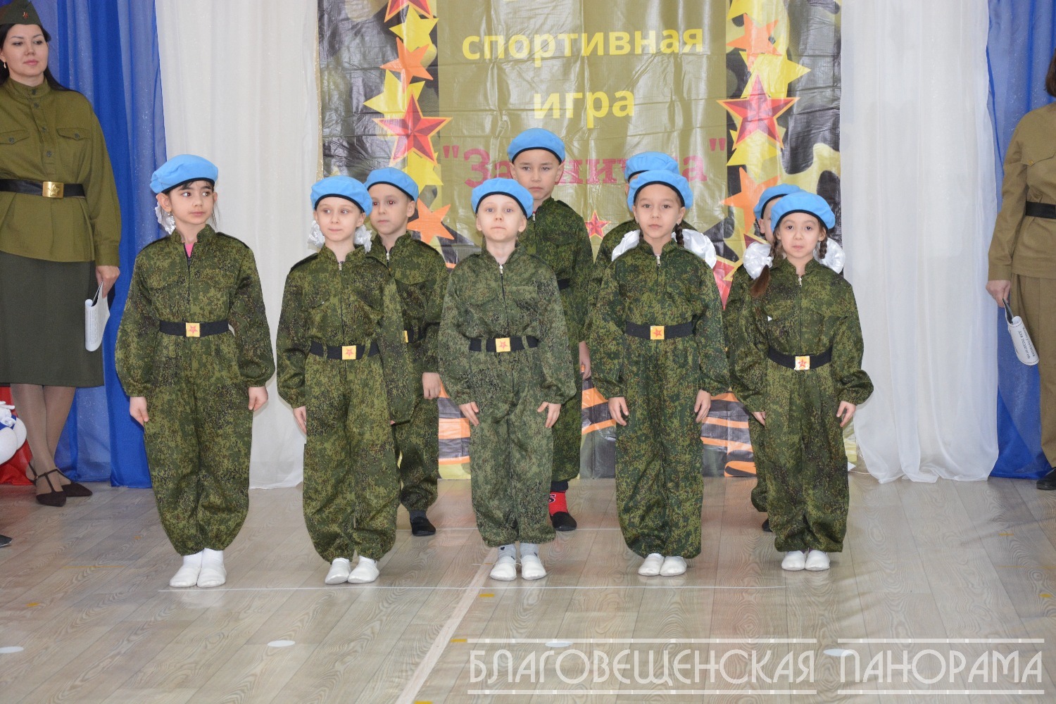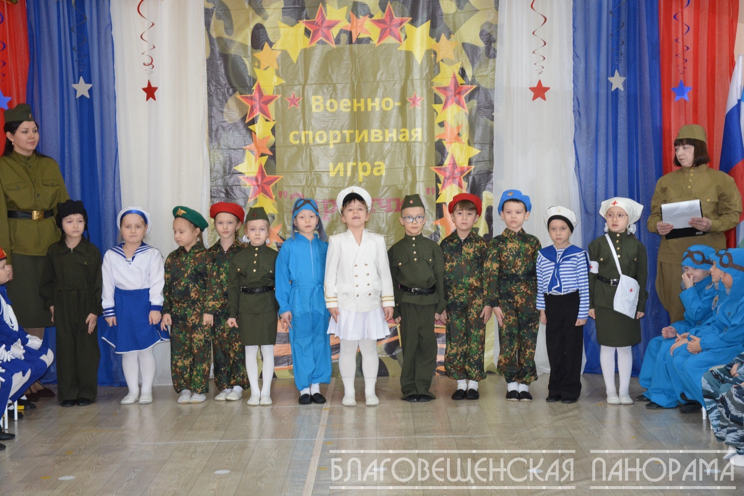 В детском саду №14 города Благовещенска состоялось патриотическое мероприятие «Зарничка», посвящённое Дню защитников Отечества.