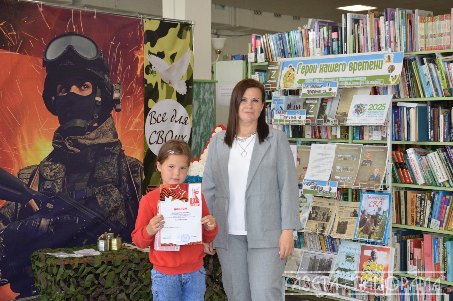 Усилили значимость мероприятию приглашенные творческие люди Благовещенска. Трогательно выступила воспитанница детской школы искусств Ульяна Новосёлова (руководитель Нина Ермолаева). Её песни заворожили зал, наполнив его теплом и светом. Некоторые даже пустили слезу. А местная поэтесса Алёна Кайбышева подарила зрителям стихи собственного сочинения – пронзительное, искреннее о детстве. И не только. В библиотеке развернулась её фотовыставка «Я горжусь СВОим папой» – каждая работа дышала любовью и гордостью.