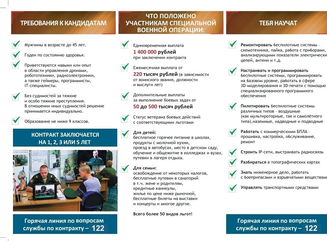 Жители Башкирии могут стать операторами беспилотников. На сайте башбат.рф размещена вся информация о наборе. Служба в войсках беспилотных систем в Башкирии имеет ряд важных преимуществ. Операторы БПЛА работают вдали от передовой, что обеспечивает им повышенный уровень безопасности. Контракт можно заключить на срок от одного года, и после его окончания есть возможность либо продолжить службу, либо уйти. Важным моментом является то, что без согласия военнослужащего его не переведут на другую должность или в другой род войск, что позволяет сохранить выбранную специальность. Кроме того, контрактники получают полный социальный пакет, который включает все предусмотренные законом выплаты, льготы и гарантии. Для студентов предусмотрена возможность взять академический отпуск и после службы восстановиться на бюджетном месте. Также стоит отметить, что за успешное поражение целей операторы могут получать дополнительные выплаты в размере от 50 до 500 тысяч рублей. Всю информацию о службе в БПЛА можно узнать на сайте башбат.рф или по номеру 122.